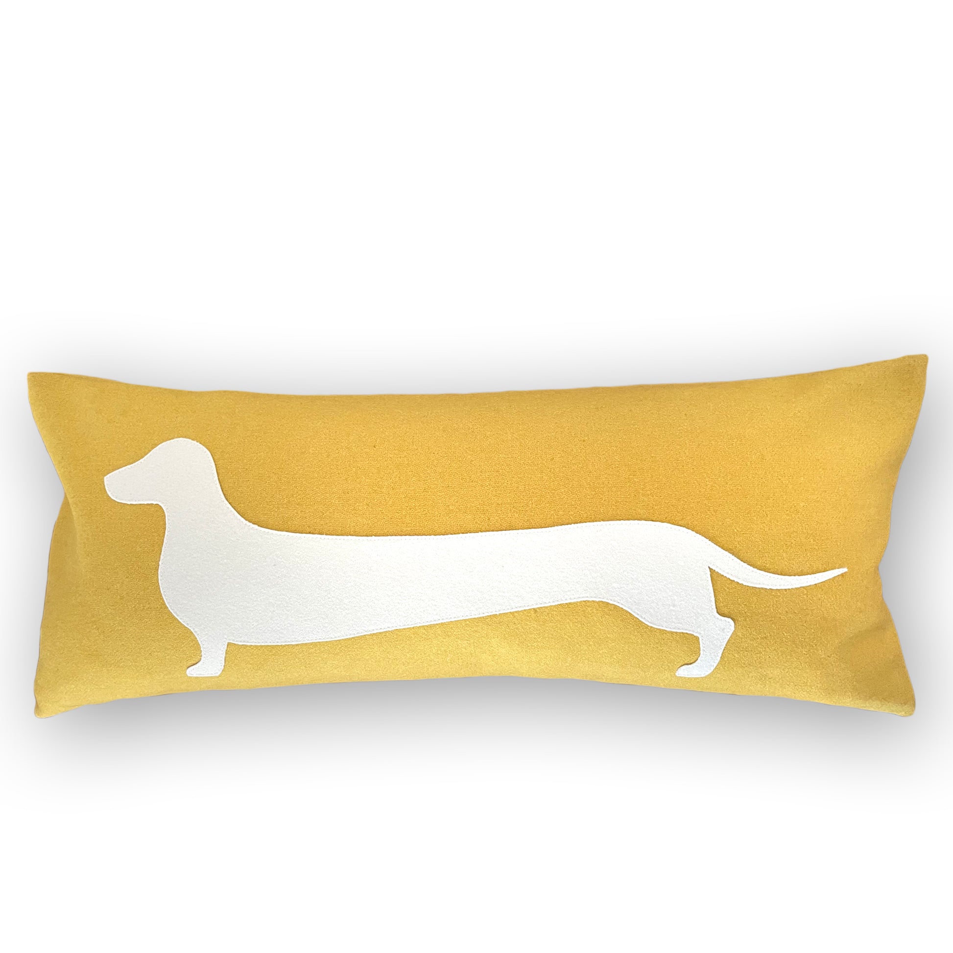Ein Dekokissen für alle Dackel-Fans und Dekoliebhaber! Dieses Designer-Kissen ist aus hochwertigem Wollstoff gefertigt und mit einem besonders laaangen Dackel verziert. Die Applikation wurde von Hand ausgeschnitten und mit der Nähmaschine appliziert. Ein Blickfang für jedes Zimmer und ein Must-Have für alle, die es kreativ und unkonventionell mögen.