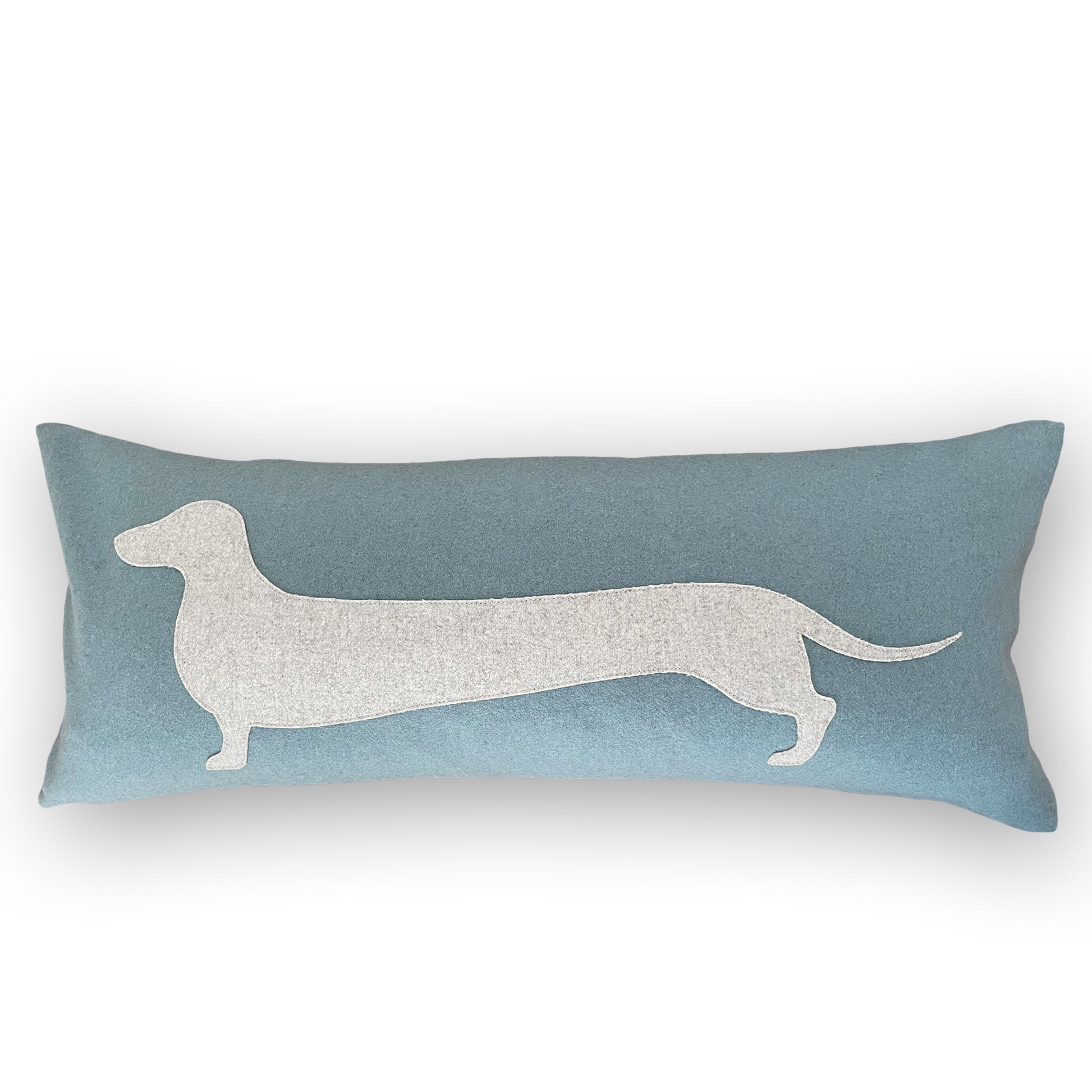 Ein Dekokissen für alle Dackel-Fans und Dekoliebhaber! Dieses Designer-Kissen ist aus hochwertigem Wollstoff gefertigt und mit einem besonders laaangen Dackel verziert. Die Applikation wurde von Hand ausgeschnitten und mit der Nähmaschine appliziert. Ein Blickfang für jedes Zimmer und ein Must-Have für alle, die es kreativ und unkonventionell mögen.