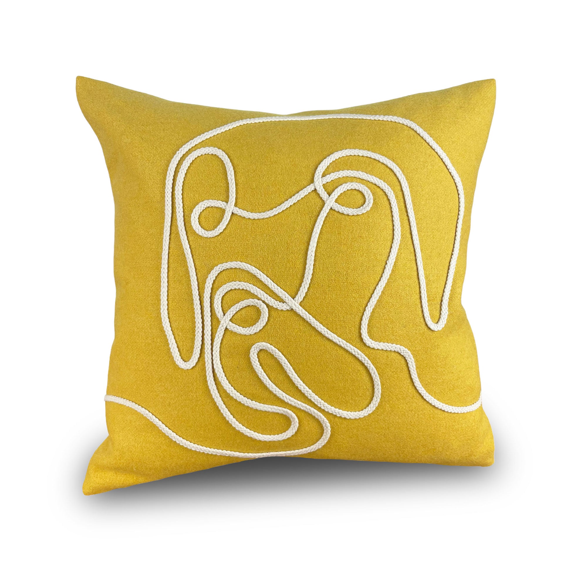 UNIKAT - Dekokissen LineArt I Dogge - 40x40cm - sonnengelb