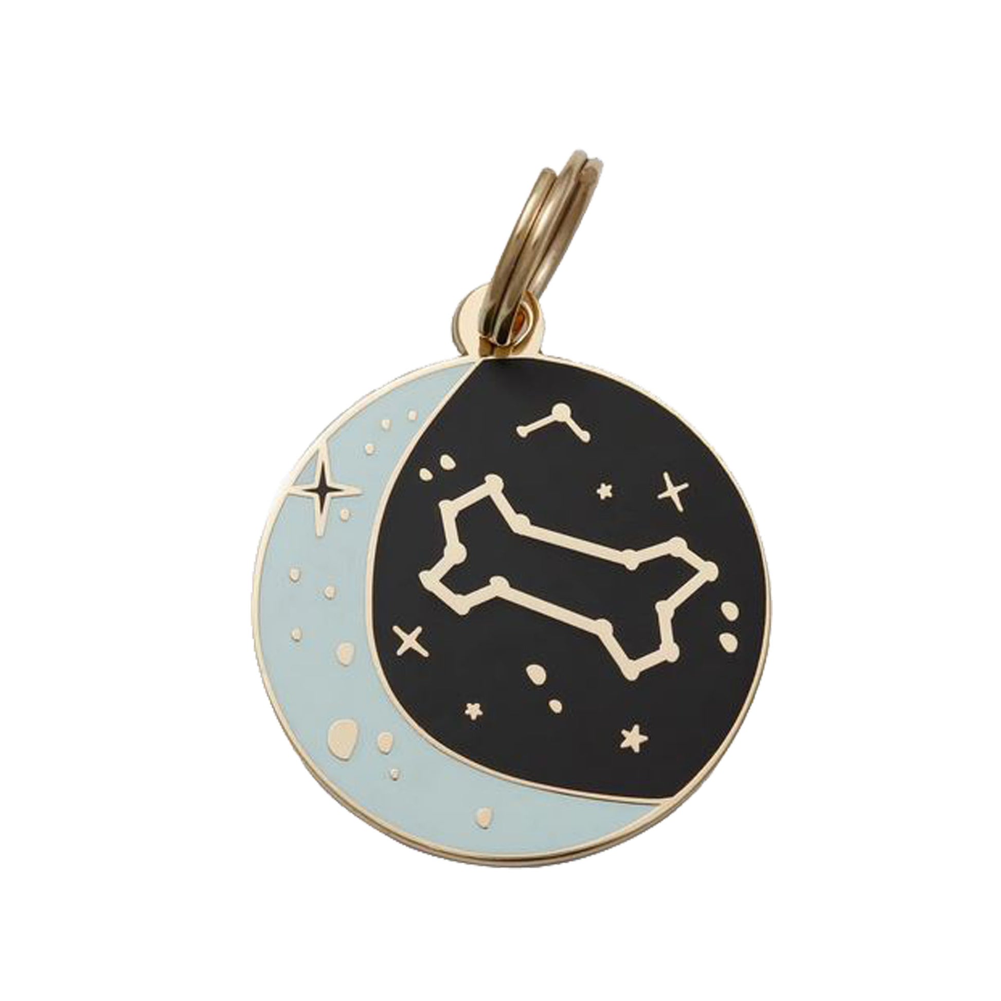 Hundemarke aus vergoldetem Messing und Emaille. Die Rückseite ist nicht emailliert und kann bei Bedarf individuell graviert werden.