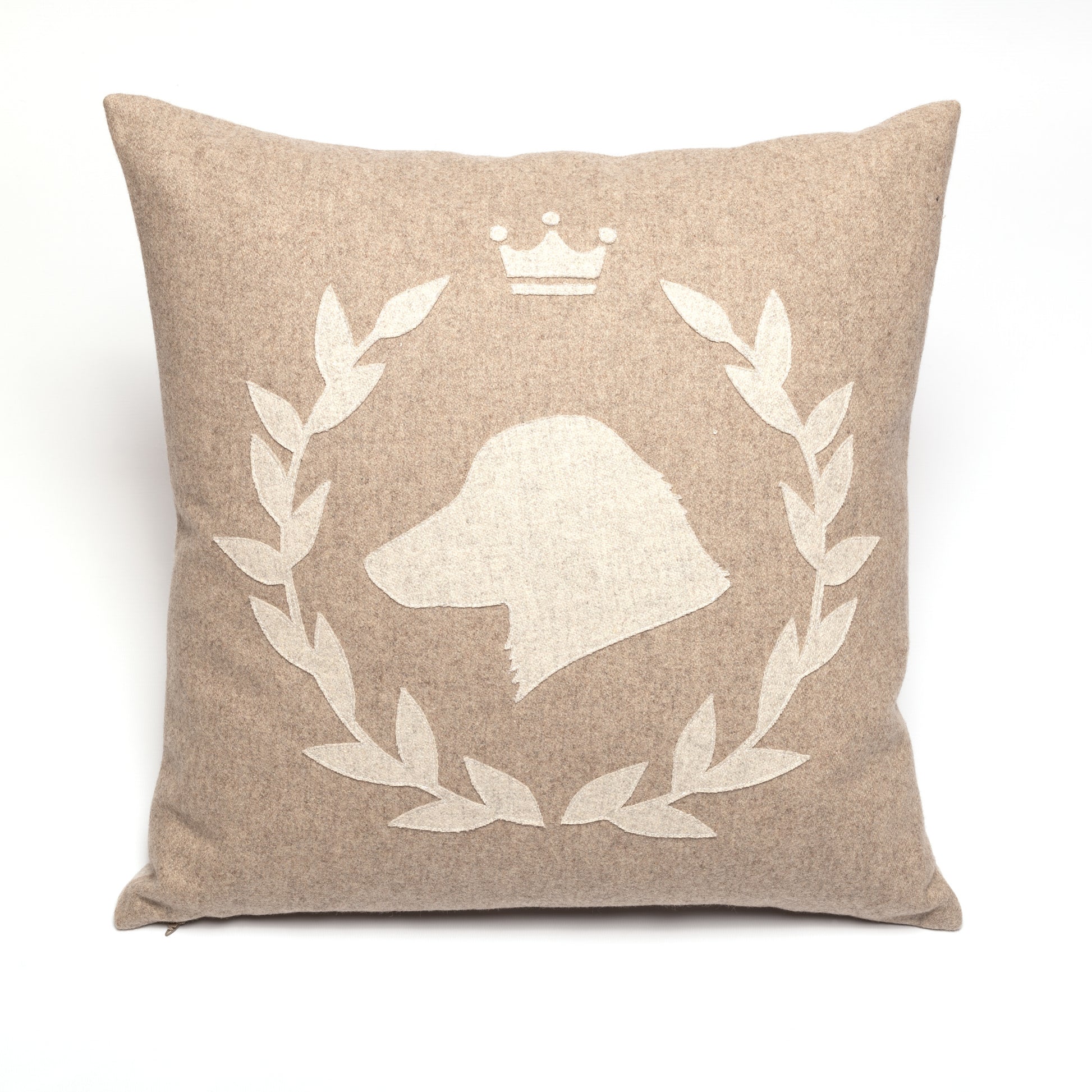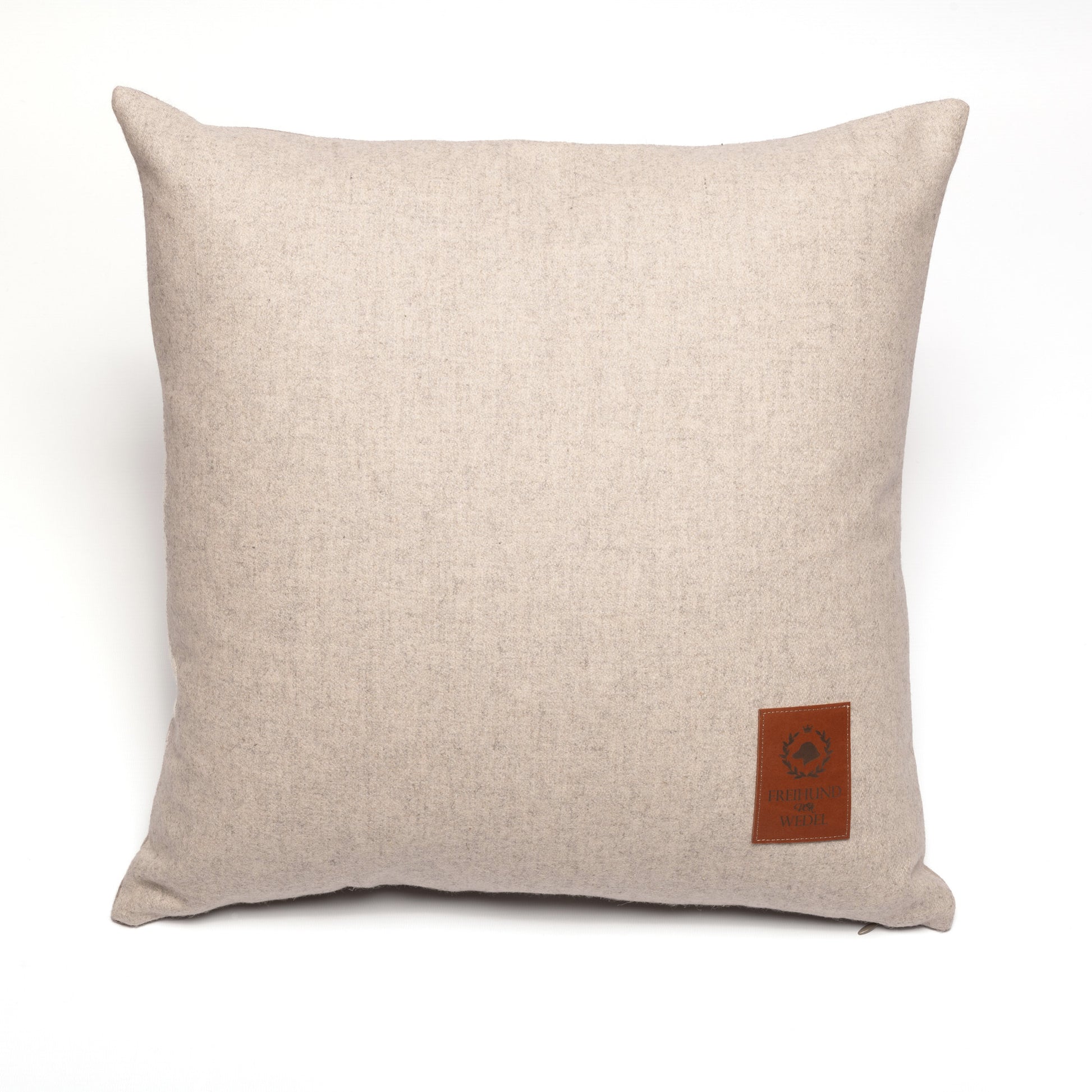 Ein Hauch Exklusivität weht durchs Zimmer, wenn unser zweifarbiges Dekokissen mit großem FREIHUND VON WEDEL-Logo auf dem Sessel thront. Fein von Hand ausgeschnitten und mit der Nähmaschine appliziert, macht sich dieses exklusive Kissen ganz besonders gut in den subtilen, zweifarbigen Naturtönen.