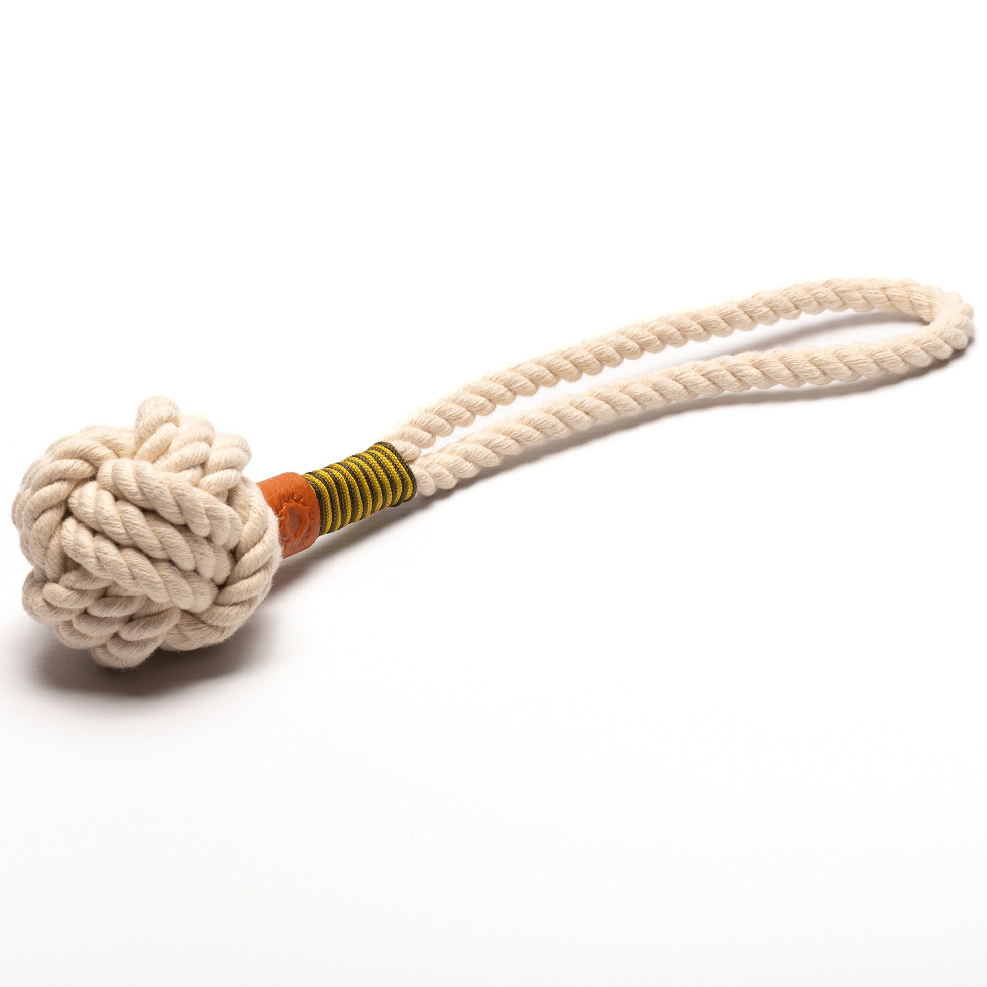 YOKI eignet sich perfekt dazu. Ein stabil geknüpfter Ball mit großer Handschlaufe zum besonders weit Werfen. Und damit es nicht zu langweilig im hohen Gras aussieht, sorgt eine farbige Takelung mit dem unverkennbaren FREIHUND VON WEDEL-Label für die optische Stimmungsaufhellung.