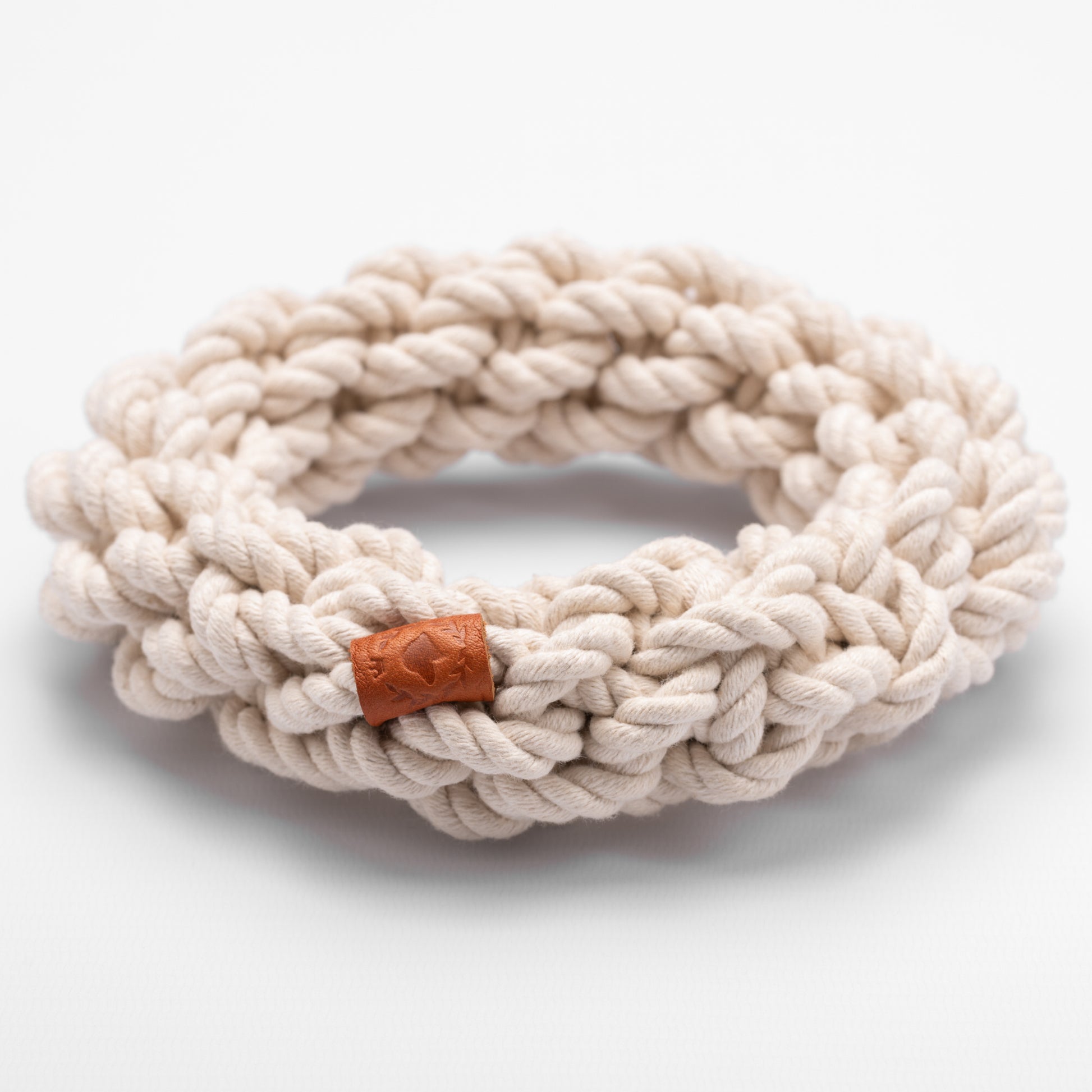 Unseren Tau-Ring ENDLASSIE kann man zwar auch wunderbar werfen, allerdings macht es viel mehr Spaß, mit ihm schöne Zerrspiele zu veranstalten: der robust geknüpfte Ring macht es möglich.